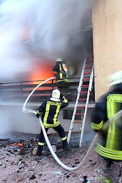 Spektakulär war die Rettungsaktion der weiteren Bewohner aus dem ersten Stock. Der 41 Jahre alte Markus Pitz wohnt mit seiner Freundin Jasmin (38) in der hinteren der beiden Wohnungen. Ihnen war durch Rauch und Hitze der Fluchtweg über das Treppenhaus abgeschnitten. Nur durch das beherzte Eingreifen der Nachbarschaft gelang ihnen die abenteuerliche Flucht über eine Leiter. Diese hatten Nachbarn auf das Dach eines Pkw gestellt, um den Balkon der Familie Pitz zu erreichen. Den Hund Rocky hatte Pitz vor seiner Rettung mit einem Seil vom Balkon abgelassen.