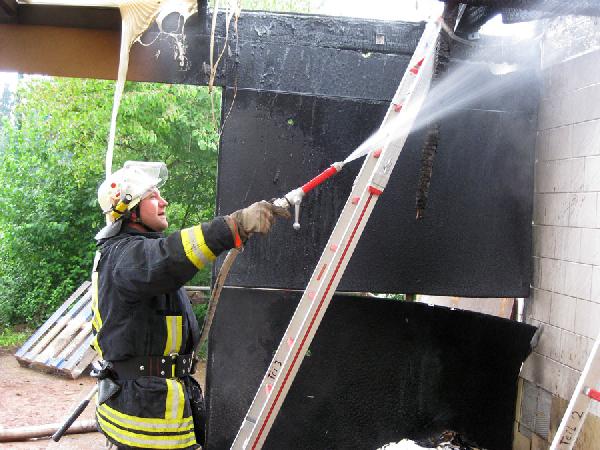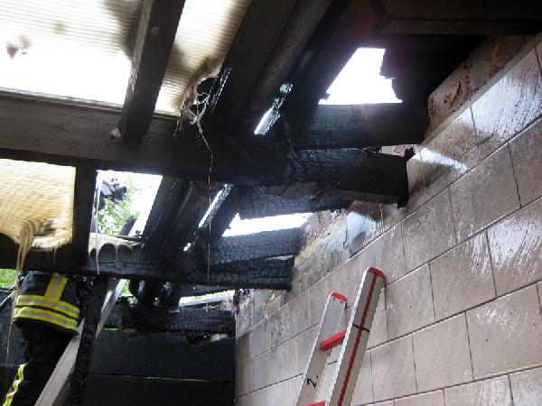 Zum endgültigen Ablöschen mussten Teile der Dacheindeckung entfernt werden. Das offene Dach wurde mit einer Plane gesichert und die Einsatzstelle an die Polizei übergeben. Die Feuerwehr war mit 25 Feuerwehrleuten im Einsatz.