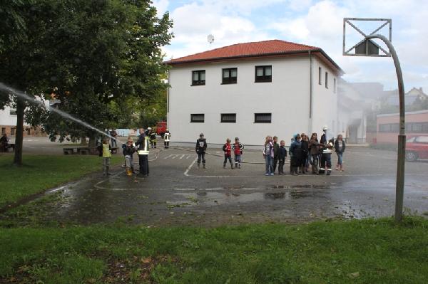 Anschließend durfte jedes Kind selbst Feuerwehrmann spielen und am Strahlrohr ihr Können unter Beweis stellen.