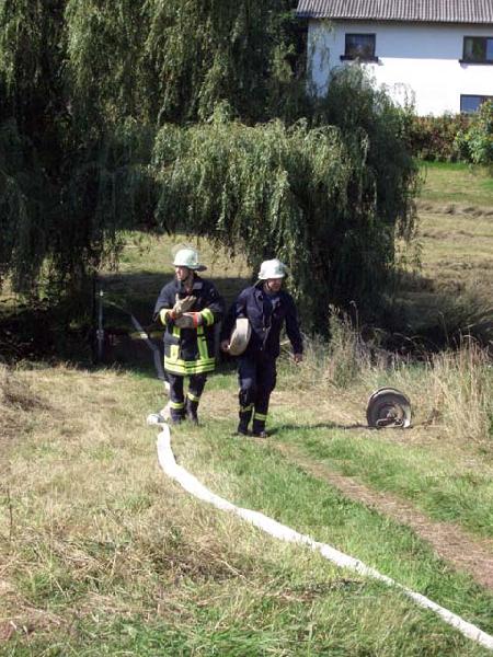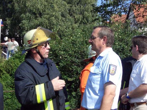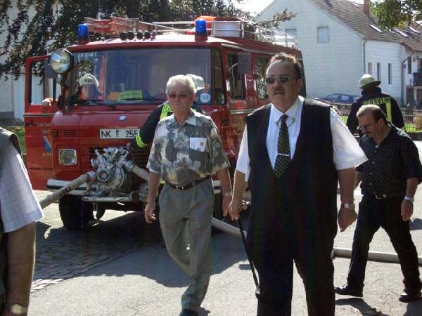 Bei seiner Rede im Anschluß an diese Übung bedankte er sich für das zahlreiche Erscheinen und zeigte sich stolz auf "seine" Feuerwehrleute. Auch der Wehrführer der Gemeinde Eppelborn, Hermann Josef Recktenwald, zeigte sich in seiner Ansprache im Gasthaus Bohlen zufrieden mit der gezeigten Leistung. Er versprach, dass die Problematik der Löschwasserversorgung bei Großereignissen ein Thema der nächsten Besprechung der Führungskräfte sein wird.