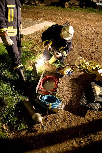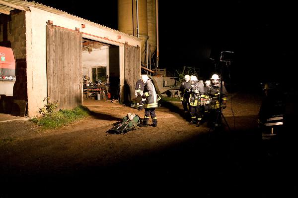 Humes. Mit Blaulicht und Martinshorn rückten mehrere Feuerwehrfahrzeuge aus Humes und Wiesbach am Abend des 22. Oktober 2011 auf dem Marienhof in Humes an. Sie waren gegen 19:00 Uhr zu einer gemeinsamen Nachtübung alarmiert worden. Brandmeister Patrick Behr, der die Übung auf dem Aussiedlerhof vorbereitet hatte, erwartete die Einsatzkräfte bereits und wies sie in die Lage ein.