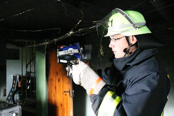 Gegen 10:47 Uhr wurden kurz darauf die Löschbezirke Wiesbach, Eppelborn und Habach alarmiert. Bei der Ankunft der ersten Einsatzkräfte waren keine Personen mehr im Gebäude, rauch drang aus mehreren Fenster des Gebäudes. Unter Atemschutzeinsatz drang ein Trupp in die völlig verqualmte Waschküche vor und konnte den Brand, der im Bereich von Wäschetrockner und Waschmaschine ausgebrochen war, schnell löschen. Die betroffenen Elektrogeräte wurden zum Ablöschen ins Freie gebracht und die Einsatzstelle mehrmals mit der Wärmebildkamera kontrolliert.