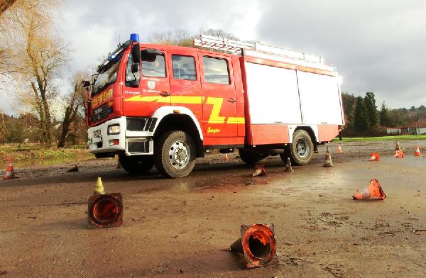 Und... Action! Anlauf auf die Übungsstraße-plötzlich fliegt ein Gegenstand in die Fahrbahn. Das eben noch wie auf Schienen rollende Einsatzfahrzeug der Feuerwehr Landsweiler-Reden mit fast 18 Tonnen Gewicht, fängt an zu wanken. Jetzt zählen Hundertstelsekunden. Kuppeln, Bremsen, Gegenlenken - Kampf gegen Adrenalin und Fliehkraft. Der Wagen steht – und trotzdem zu spät. Unter den Vorderreifen klemmt ein rotweißer Plastikpylon. Fahrer Stephan Kiefer ist noch sichtlich gezeichnet und überrascht von der Reaktion seines Fahrzeugs. "Zum Glück nur ein Stück Plastik und kein Mensch" kommentiert die stellvertretende Vorsitzende des Kreisfeuerwehrverbandes Christine Schäfer die Szene.