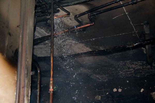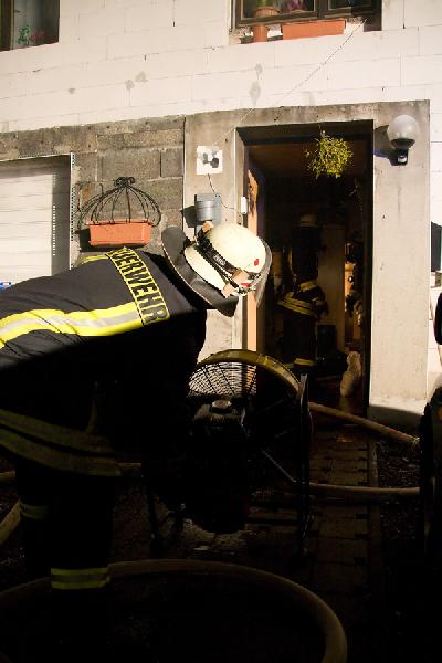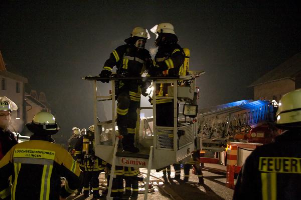 Zu diesem Zeitpunkt befanden sich keine Personen mehr im Gebäude. Da die Situation am Anfang unübersichtlich war, wurde die Drehleiter aus Illingen nachgefordert. Ausgerüstet mit Atemschutzgeräten drangen mehrere Trupps zur Erkundung in das Gebäude vor. Sie konnten den Brandherd im Bereich der Heizungsanlage im Keller des Hauses lokalisieren und löschen. Um 05:23 Uhr konnte dem Einsatzleiter "Feuer aus" gemeldet werden. Mit Überdrucklüftern musste der Brandrauch aus dem Gebäude gedrückt werden, um freie Sicht zu erhalten.