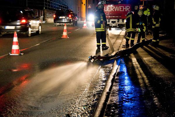 Der Eigentümer selbst hatte bereits die Hauptwasserzufuhr gestoppt. Mit mehreren Tauchpumpen und einer Tragkraftspritze wurde das Wasser, dass bis zu einem Meter hoch in dem Keller stand, abgepumpt. Aus Sicherheitsgründen wurde das Gebäude durch eine Elektrofachkraft stromlos geschaltet.
