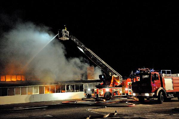 Die Besatzungen der beiden Löschfahrzeuge der City-Wache konzentrierten sich zunächst darauf, die etwa 15 weiteren LKW und Abschleppwagen, die auf dem Firmengelände stehen, gegen die Flammen zu schützen. Einsatzleiter Herrmann und Neunkirchens Wehrführer Franz-Josef Kuhn forderten aufgrund der Situation sofort weitere Verstärkung an.