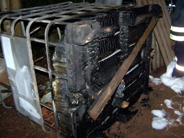 Mit Wasser und Löschschaum bekämpften die Einsatzkräfte das Feuer. Doch trotz des sofortigen Löscheinsatzes brannte der Unterstand völlig nieder. Wegen der starken Rauchentwicklung mussten die Arbeiten zum Teil unter Atemschutzeinsatz durchgeführt werden.
