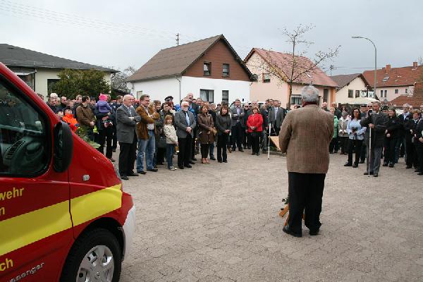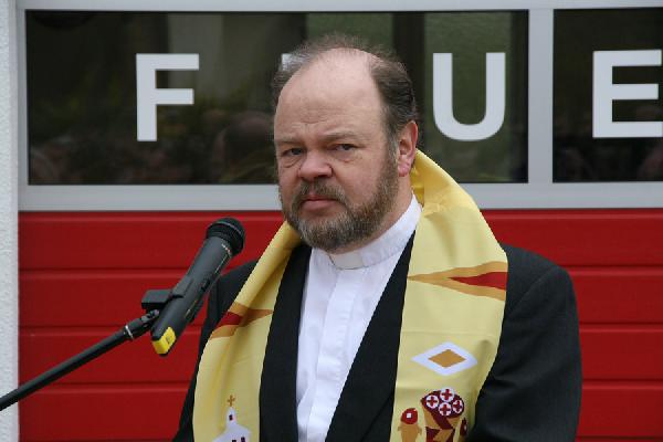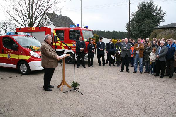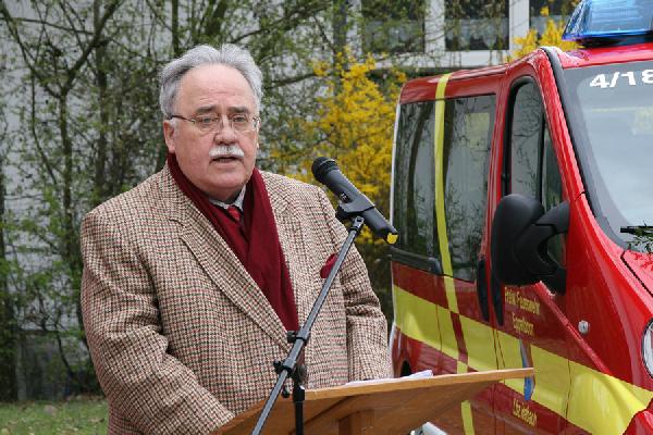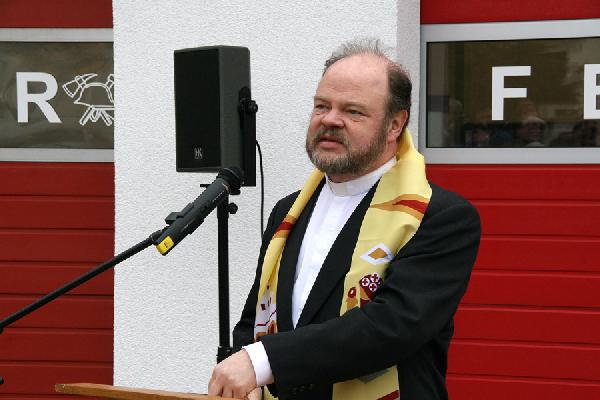 Bei der offiziellen Übergabe der Räumlichkeiten und der neuen Fahrzeuge lobte Bürgermeister Fritz-Hermann Lutz das große Engagement des Löschbezirkes und die vorbildliche Zusammenarbeit zwischen DRK und Feuerwehr Habach bei der Umsetzung des Bauprojektes. Im Anschluss an seine Rede segnete Pastor Matthias Marx die neuen Fahrzeuge und die Räumlichkeiten und bat für himmlischen Schutz bei allen Einsätzen.