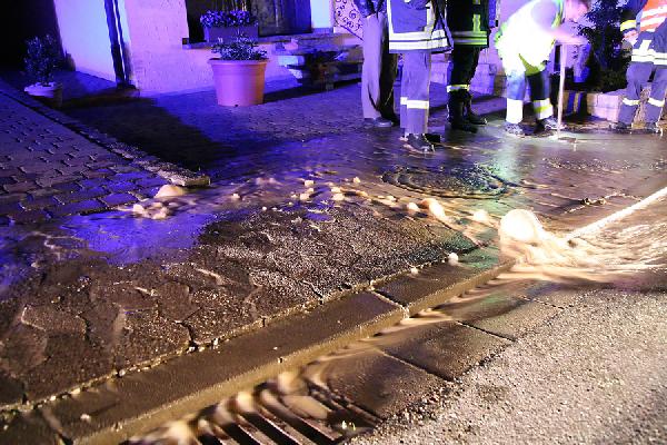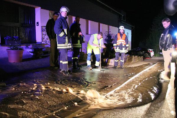 Die Feuerwehr sicherte die Einsatzstelle, während ein Mitarbeiter des Wasserversorgers die betroffene Wasserleitung abschieberte und so den Wasserfluss stoppte.