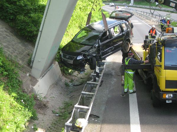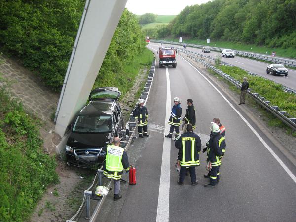 Das Fahrzeug rutschte über die Leitplanken und landete genau zwischen einem Brückenpfeiler und den Leitplanken. Dabei verkeilte sich das Fahrzeug derart unglücklich, dass sich die Fahrzeugtüren nicht mehr öffnen ließen. Der nur leicht verletzten Fahrerin gelang es, aus eigener Kraft in den Kofferraum zu klettern, wo sie durch Ersthelfer betreut wurde. Gegen 17:35 Uhr wurden Polizei, Rettungsdienst und die Feuerwehren aus Eppelborn und Bubach-Calmesweiler alarmiert.