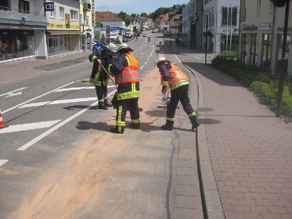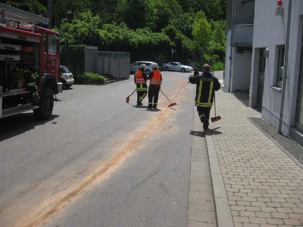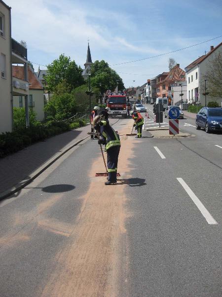 Gegen 12:32 Uhr informierte er ordnungsgemäß die Feuerwehr. Die alarmierten Einsatzkräfte aus Eppelborn fanden auf der Straße eine eine breite Ölspur vor. Da diese durch die Rutschgefahr ein Risiko für andere Verkehrsteilnehmer darstellte, sicherten sie die Einsatzstelle, streuten die Ölspur mit abstumpfenden Bindemittel ab und sammelten das überschüssige Material wieder ein.