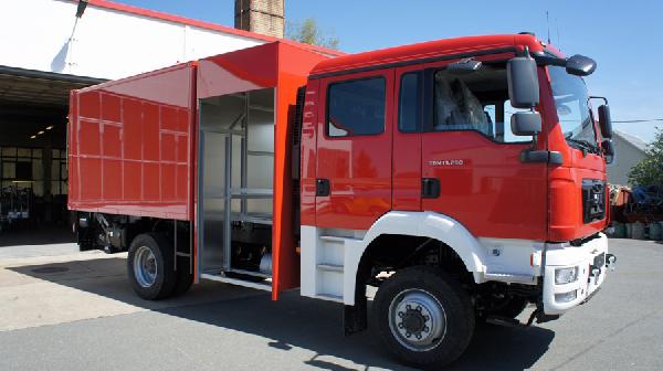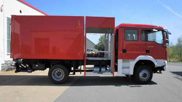 Das Fahrgestell kommt von der Firma MAN, die feuerwehrtechnische Beladung liefert die Firma C/E/R aus Blieskastel, der Fahrzeugaufbau wird von der Firma IVECO-MAGIRUS gefertigt.