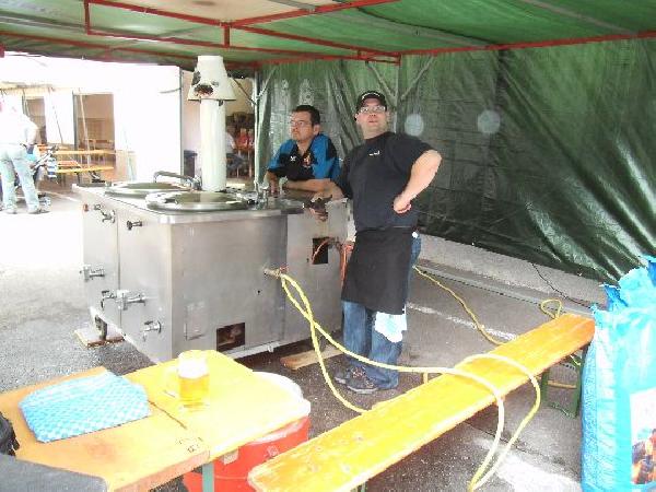 Der Samstag begann mit einem guten gemeinsamen Frühstück, begleitet von einem tollen Sonnenschein. Langsam trafen die Frauen und Alterswehrkameraden ein, um das Essen für Abends und den nächsten Tag vorzubereiten. Es war eine gute Truppe beisammen, die Hand in Hand, mit viel Spaß und Freude, die anfallenden Arbeiten erledigte. Der Nachmittag verlief ruhig und für unsere Gäste war ein Besuch des Bergwerk Velsen geplant. Sie verlebten hier im Saarland einen schönen Nachmittag. Das hervorragende Bierwetter zog bereits schon früh viele Besucher an und der Samstagabend verprach ganz toll zu werden. In der Fahrzeughalle war eine Disco geplant und DJ Markus sorgte für ordentliche Musik. Durch die günstige Wetterlage konnten unsere Besucher lange draussen sitzen und es zog kaum jemanden füh nach Hause.