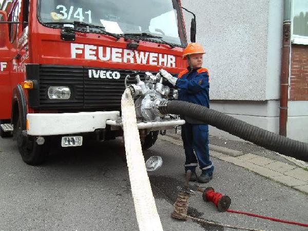 Das Nachtwache-Team Rudi und David Spindler, wurden vom Erbsensuppen-Küchen-Team, morgens um 6 Uhr abgelöst und konnten Ihrem verdienten Schlaf entgegeneilen. An dieser Stelle sei der Nachtwache für Ihren guten Job gedankt. Der Fanfarenzug Spiesen-Elversberg fand sich vormittags ebenfalls ein, um mit flotten Rhytmen die Frühschopper zu begeistern. Wie schon am Tage zuvor war tolles Wetter und die Besucher blieben trocken. Das Mittagessen nahte und der Andrang war groß an den Essensständen. Ein Beweis dafür, dass die Qualität und die Sauberkeit bei der Feuerwehr aus Dirmingen GROß geschrieben wird. Es war nicht zu heiß und so blieben viele Gäste über Mittag einfach sitzen und ließen sich dann gegen 16 Uhr von einer Schauübung der Jugendfeuerwehr begeistern. Auch der Gemeinde-Jugendwart Karl Paul war gekommen und schaute den jungen Feuerwehrleuten aus Dirmingen bei Ihrer Übung zu. Guido Kuhn, der Jugendwart, gibt sich immer viel Mühe die Übungen vorzubereiten und durchzuführen. Mittlerweile waren unsere Freunde aus Pfaffenthal in Luxemburg auch eingetroffen. Zwischen den Feuerwehrleuten aus Pfaffenthal und uns besteht schon viele Jahre eine gute Freundschaft. Es wurde ein sehr schöner Nachmittag, dem sich ein gemütlicher Abend anschloss. Ab 22 Uhr wurde angefangen abzubauen und die restlichen Gäste versammelten sich um den Bierstand, gerade noch rechtzeitig um nicht nass zu werden, denn es gab einen sintflutartigen Regenfall. Die Floriansjünger hatten viel Glück, dass der Regen erst nach dem Abbau einsetzte.