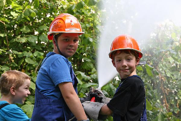Die realistische Übung mit Blaulicht und Martinshorn machte den Jungen und Mädchen sichtlich Spaß, die trainierten Handgriffe sitzten. Das bestätigte auch Wehrführer Hermann Josef Recktenwald, der stolz auf seine starke Truppe war. Und dass nach dem Befehl "Wasser halt" das restliche Wasser in den Schläuchen genutzt wurde, um die Kameraden an diesem sonnigen Nachmittag nass zu spritzen, wurde von den Ausbildern mit einem Schmunzeln beobachtet.