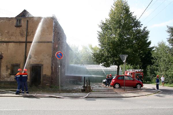Großbrand in Dirmingen! Nach einem Absturz eines vom nahe gelegenen Segelflugplatz gestarteten Flugzeugs war es im Bereich des Brühlplatzes gleich zu mehreren Bränden gekommen, lautete der Einsatzauftrag an die Jungen und Mädchen der Jugendfeuerwehr, die am 09. September 2012 zusammen mit ihren Betreuern zur Jahresabschluss angerückt waren.