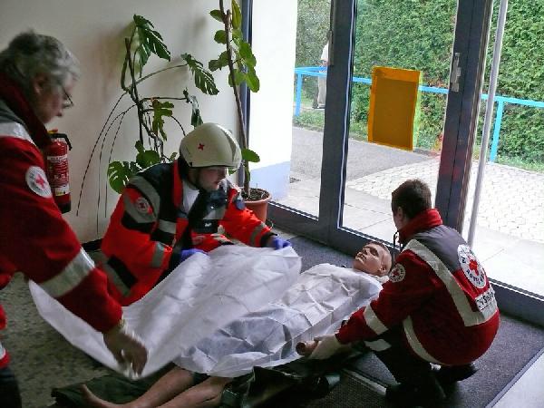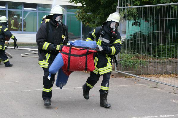 Das Szenario: In Folge von Bauarbeiten am Dach der Kindertagesstätte war es zu einem Brand mit starker Verrauchung des gesamten Gebäudes gekommen. Eine unbekannte Anzahl an Personen sollen sich noch in dem Gebäude befinden. Nachdem sich die ersten Helfer einen Überblick über die Lage verschafft haben, ist klar: Weitere Kräfte müssen zur Unterstützung angefordert werden.