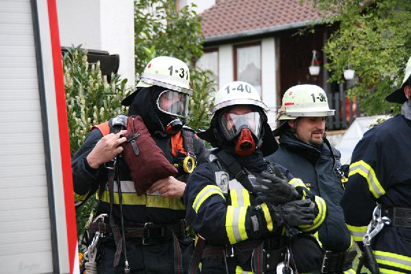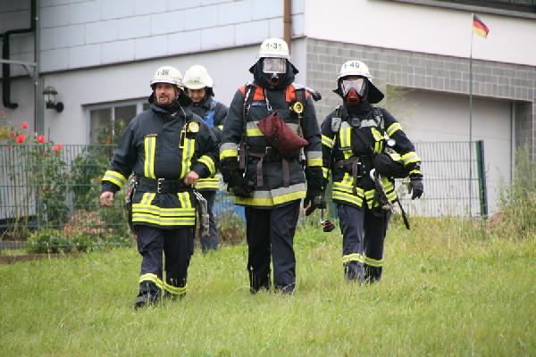 Eine gute Stunde dauert die Übung, bis "Wasser halt" gegeben werden konnte. Die anwesenden Übungsbeobachter und Führungskräfte zeigten sich sehr zufrieden mit der gezeigten Leistung. Neben der Zusammenarbeit wurden auch die neuen Digitalfunkgeräte des TETRA-Netzes ausprobiert, das sich zur Zeit im Probebetrieb befindet und erhebliche Verbesserungen in der Kommunikation bringen soll.