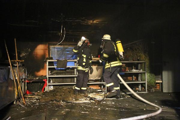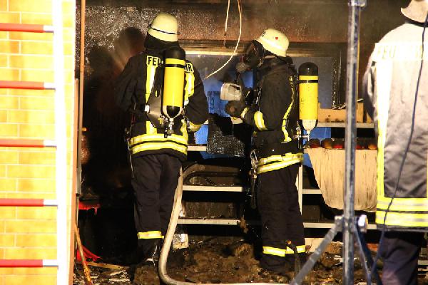 Die Einsatzstelle wurde nach Abschluss der Löscharbeiten mit der Wärmebildkamera auf weitere versteckte Glutnester kontrolliert, bevor sie an die Polizei übergeben werden konnte. Die Brandursache ist unklar. Es entstand Sachschaden in noch unbekannter Höhe. Die Feuerwehr war bis gegen 09:20 Uhr im Einsatz.