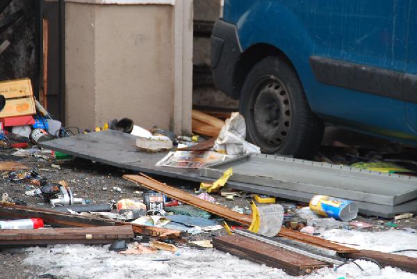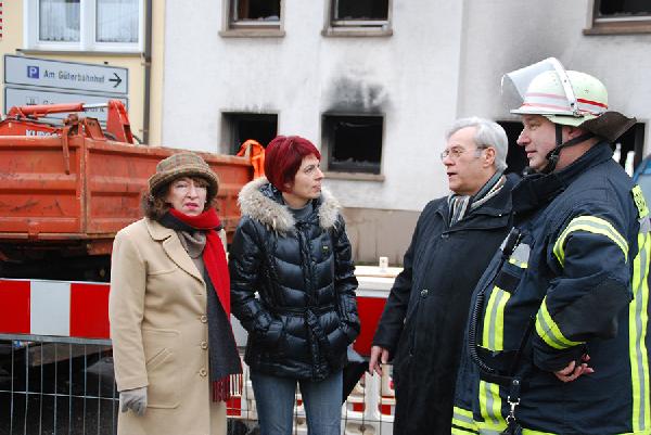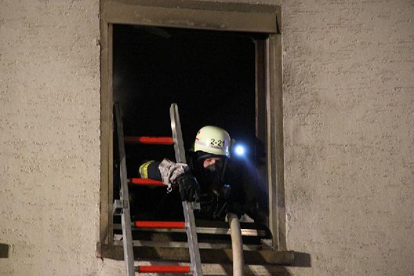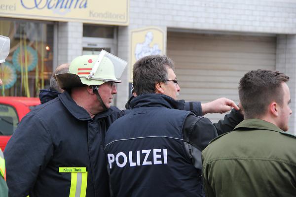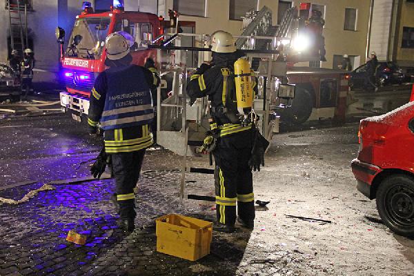 Das Feuer konnte durch mehrere Trupps, die unter Atemschutz in das Gebäude vordrangen, schnell gelöscht werden. Nachdem das Gebäude mit der Wärmebildkamera abgesucht worden war und feststand, dass sich keine weitere Person mehr in dem Gebäude aufhält, wurden alle Einsatzkräfte aus dem Gebäude abgezogen. Denn die Gefahr für die Einsatzkräfte war zu groß: In der Fassade des Wohnhauses klafften nach der Explosion etwa handbreite Risse im Mauerwerk. Schnell war klar, dass hier akute Einsturzgefahr bestand.