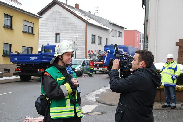 Trotz seiner schweren Verletzungen konnte er den Einsatzkräften wichtige Hinweise geben und noch mitteilen, dass er kurz vor der Explosion Gasgeruch in seinem Haus bemerkt hatte. Die ersten Trupps der Feuerwehr durchsuchten zunächst das Wohnhaus, in dem laut Melderegister noch eine weitere Person gemeldet war, und stellten die Gaszufuhr ab. Aufgrund der Schadenslage veranlasste Einsatzleiter Dr. Frank Schwan sofort die Alarmierung weiterer Feuerwehrkräfte aus Dirmingen.