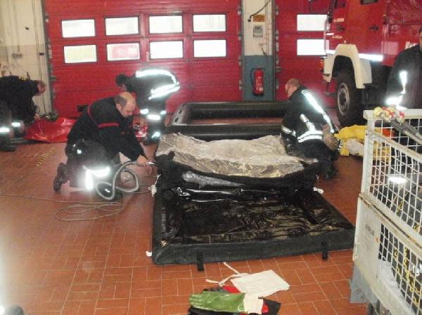 In gemischten Trupps von Schiffweiler und Bubach-Calmesweiler Kameraden wurde die Auskleidung der eingesetzten Kameraden aus den Chemieschutzanzügen übernommen.