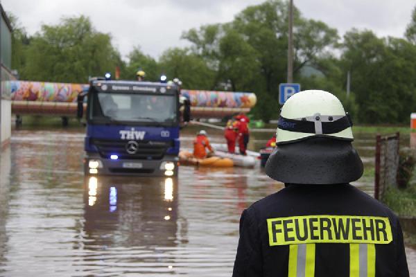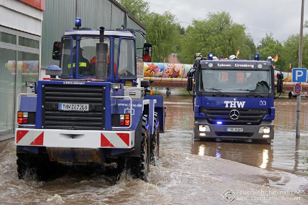 Für die über 250 Einsatzkräfte von Feuerwehr, Technischem Hilfswerk und der Deutschen Lebensrettungsgesellschaft sowie dem DRK im Landkreis Neunkirchen, war es ein sehr arbeitsreiches Pfingstfest. Fast 24 Stunden waren die Helfer an über 100 Stellen im Kreisgebiet unterwegs um Keller auszupumpen, Sandsäcke zu füllen, Autos zu bergen und weitere Schäden durch den Starkregen zu verhindern. Bereits um 4 Uhr in der Früh am Pfingstmontag wurden die ersten Einsatzkräfte aus den Betten "gepiepst". Der letzte Alarm galt der Neunkircher Wehr gestern Nacht um 1 Uhr.