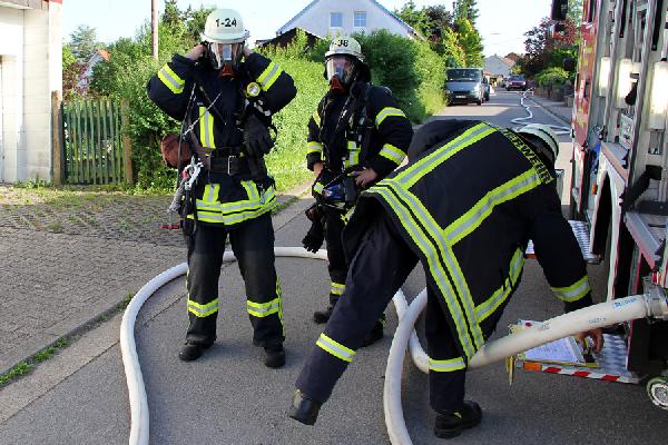 Beim Eintreffen der Feuerwehr drang aus einem Fenster im Erdgeschoss des freistehenden Wohnhauses dichter Brandrauch. Zu diesem Zeitpunkt waren keine weiteren Personen mehr in dem Gebäude. Die beiden Helfer und der Anwohner wurden durch den Rettungsdienst betreut. Mit Atemschutzgeräte ausgerüstet drang ein Trupp in den vermuteten Brandraum vor. Trotz der völligen Verqualmung gelang es der Feuerwehr schnell, den eigentlichen Brandherd zu finden und das Feuer zu löschen.