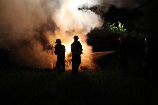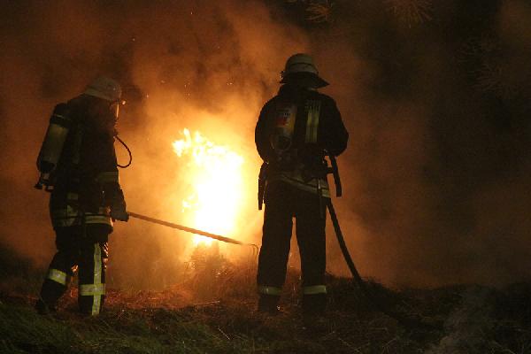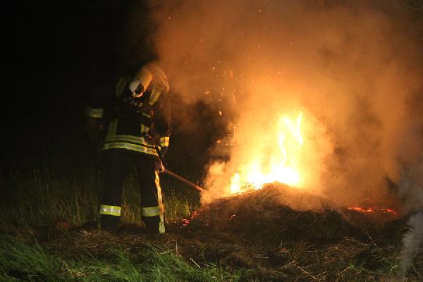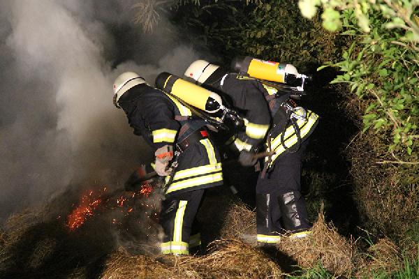 Um versteckte Glutnester unter dem Haufen aufzuspüren, musste das Heu auseinander gezogen und immer wieder abgelöscht werden. Wegen der dabei entstehenden starken Rauchentwicklung musste die Einsatzkräfte Atemschutzgeräte tragen. Ein Übergreifen der Flammen auf die Hecke und den Baumbestand konnte verhindert werden.