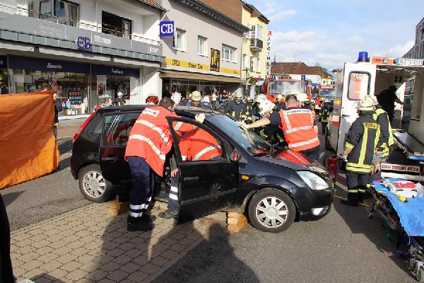 Der Peugeot krachte seitlich in den Ford des 86-jährigen und schob ihn über eine Verkehrsinsel. Während der Fahrer des Peugeot sein Fahrzeug unverletzt verlassen konnte, war die Fahrerseite des Ford durch den Unfall so deformiert, dass sich die Fahrzeugtür nicht mehr öffnen ließ. Während sich Ersthelfer um den verletzten Rentner kümmerten, wurden über Notruf die Rettungskräfte verständigt.