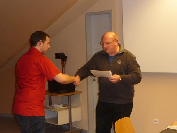 Neben seinen Grüßen und Ausführungen nahm er auch noch die Beförderung von Kani Mikel zum Oberfeuerwehrmann und die Ehrung für 35-jährige Mitgliedschaft in der Feuerwehr von Schmitt Armin vor.