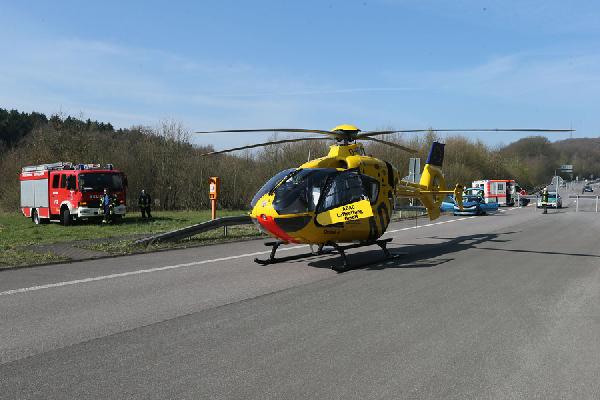 Eppelborn. Feuerwehr und Rettungsdienst wurden am Morgen des 29. März 2014 zu einem schweren Verkehrsunfall auf die Autobahn A1 in Höhe der Anschlussstelle Eppelborn gerufen. Zwei Personen sollten dort nach einem Verkehrsunfall im Baustellenbereich in ihrem Wagen eingeklemmt sein, hatten Anrufer der Einsatzzentrale gemeldet. Die schickte aufgrund der Meldung deshalb neben Polizei, Rettungswagen und Notarzt auch die Feuerwehr aus Eppelborn und Bubach-Calmesweiler sowie den Rettungshubschrauber Christoph 16 zur Einsatzstelle.