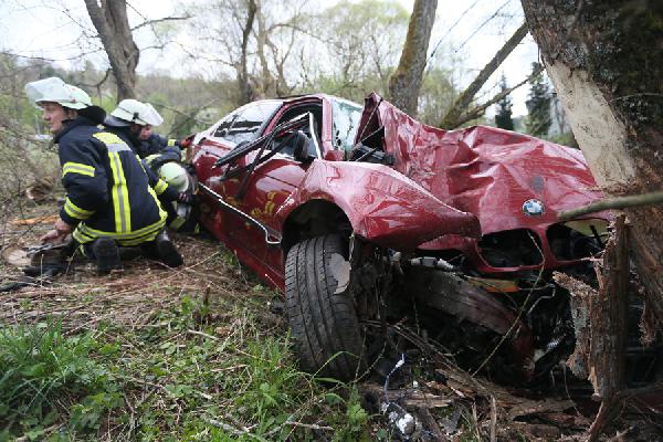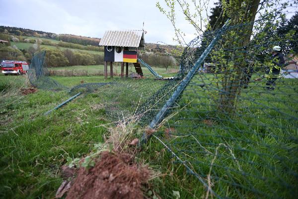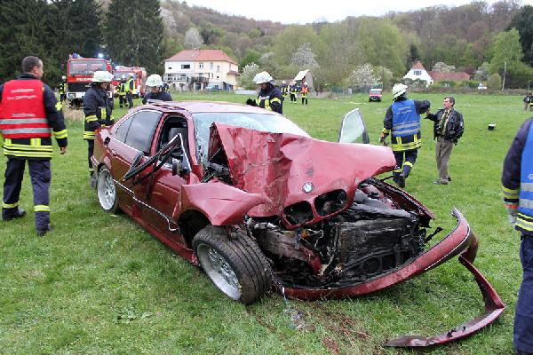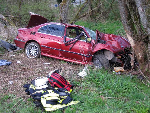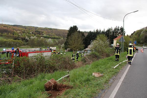 Dirmingen. Ein tragischer Verkehrsunfall ereignete sich am Abend des 08. April 2014 zwischen Dirmingen und Eppelborn. Der 62-jährige Fahrer eines 5er BMW befuhr die L112 aus Richtung Dirmingen und kam aus bisher noch ungeklärter Ursache kurz hinter dem Friedhof nach links von der Fahrbahn ab. Das Fahrzeug schoss über die abschüssige Wiese, durchbrach einen Zaun und ein Spielhäuschen und kollidierte rund 300 Meter weiter frontal mit einem Baum direkt am Ufer der Ill.