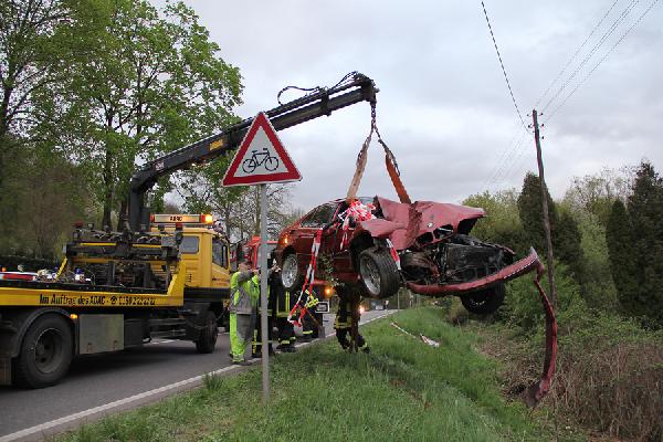 Der Fahrer verstarb kurz nach der Ankunft im Krankenhaus. Die Ursache des Unfalls ist noch ungeklärt. An dem Unfallfahrzeug entstand Totalschaden. Die Landstraße 112 musste während der Rettungs- und Bergungsarbeiten mehrmals voll gesperrt werden.