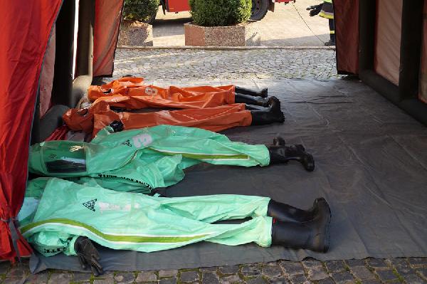 Bubach-Calmesweiler. Starke Rauchentwicklung aus einem Schuttcontainer: Mit einem ganz alltäglichen Einsatzszenario beginnt am Abend des 05. September 2014 die diesjährige Abschlussübung des Gefahrstoffzuges des Landkreises Neunkirchen. Am Abend, so das geplante Szenario, bemerkt der Inhaber eines Bauunternehmens in Bubach-Calmesweiler eine starke Rauchentwicklung aus einer beladenen Containermulde, die ein Mitarbeiter am Nachmittag auf dem Firmengelände abgestellt hatte. Da er weder das genaue Ausmaß noch eine Ursache erkennen kann, alarmiert er mit seinem Mobiltelefon die Feuerwehr.