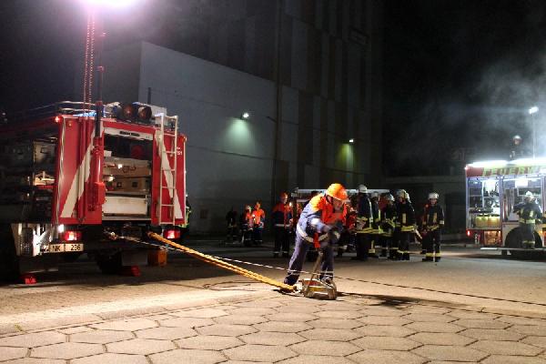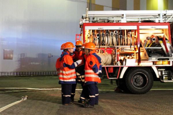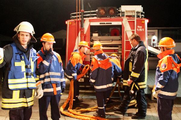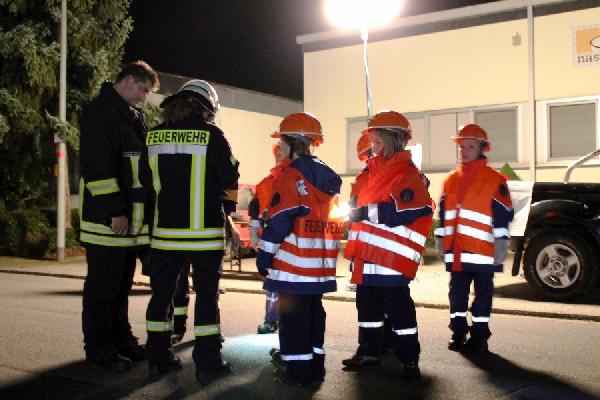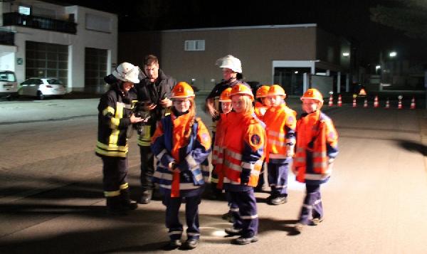 Eppelborn. 25 Jugendfeuerwehrangehörige aus den Löschbezirken Eppelborn, Bubach-Calmesweiler und Habach machten sich zusammen mit Ihren Betreuerinnen und Betreuern am Abend des 25.10.2014 samt Blaulicht und Martinshorn auf den Weg zum Firmengelände der Juchem Gruppe in Eppelborn.