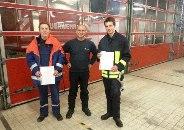 Bei einer kleinen Ansprache durch Christian Holz und Löschbezirksführer Dr. Frank Schwan, konnte den beiden Jugendfeuerwehrangehörigen Lukas Detemple und Marvin Ney die Urkunde zur Übernahme in die Aktive Wehr übergeben werden. Somit stehen dem Löschbezirk Eppelborn zwei weitere Feuerwehrmänner zum Einsatzdienst zur Verfügung.