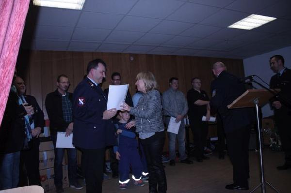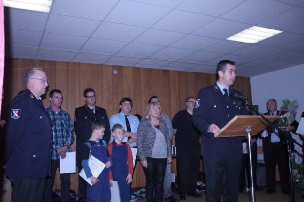 Nach der Begrüßung durch den Löschbezirksführer, Markus Lambert, übernahm die Bürgermeisterin Birgit Müller Closset das Wort. Sie fand Worte des Lobes und dankte den Wehrleuten aus Dirmingen für Ihr Engagement in der Gemeinde. Sie hob die gute Jugendarbeit im Löschbezirk Dirmingen hervor. Nach der Laudatio der Bürgermeisterin, übernahm der Wehrführer der Gemeinde Eppelborn das Mikrofon. Auch er dankte den Kameraden aus dem Löschbezirk für Ihre gute Arbeit. Zusammen mit der Bürgermeisterin nahm er sodann Ehrungen und Beförderungen von verdienten Wehrleuten vor. Frank Klein, stellvertretender Ortsvorsteher von Dirmingen,war als letzter Redner dran, ein paar Worte zu den Anwesenden zu sprechen. Auch er dankte den Dirminger Feuerwehrleuten für Ihre freiwillige Arbeit zum Schutz der Bürger. Er würdigte die Ausbildungsleistung gerade auch auf dem Sektor der Jugendfeuerwehr. Aber auch innerhalb des gesellschaftlichen, kulturellen Lebens in Dirmingen nimmt die Feuerwehr eine wichtige Stelle ein.