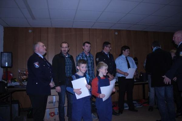 Nach dem offiziellen Teil kam der gemütliche Teil des Abends. Ein herrliches Essensbüffet war aufgebaut und jeder konnte die Speisen auswählen, die seinem Gaumen die meiste Freude bereiten. Die Jugendfeuerwehr spielte zwei Sketche und kam damit gut an. Der "Brandmeischada vonn da Derminga Feiawehr" zeigte und kommentierte eine "Museumwanderung 1950 - Dato) der besonderen Art. Eine Tombola "Live" Verlosung war dann der Höhepunkt des Abends. Heino Molter, die Glücksfee, kam nacheinander in drei verschiedenen Verkleidungen, um die Gewinne zu ziehen. Für die musikalische Begleitung an diesem schönen Abend sorgte Uwe Schulz.