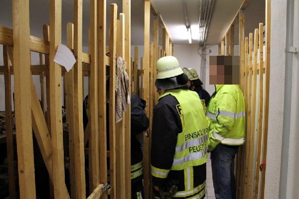 Bei Ankunft der ersten Einsatzkräfte wurde zuerst ein Löschangriff für den Fall eines Brandes in Bereitstellung gebracht. Auch der erste Trupp sowie der Einsatzleiter konnten einen Brandgeruch im Keller wahrnehmen. Jedoch kam der Geruch bekannt vor. Es handelte sich um den typischen Geruch, welcher bei Arbeiten mit einem Winkelschleifer freigesetzt wird.