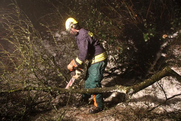 Die alarmierten Einsatzkräfte aus dem Löschbezirk Humes leuchteten die Einsatzstelle aus und beseitigten den Schneebruch mit einer Kettensäge. Der Einsatz war für die Feuerwehr nach kurzer Zeit beendet.