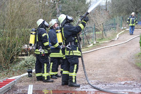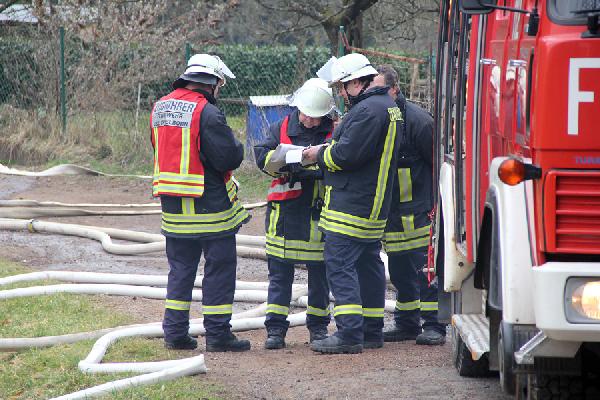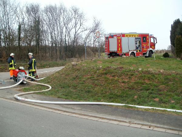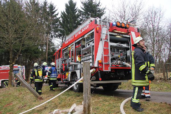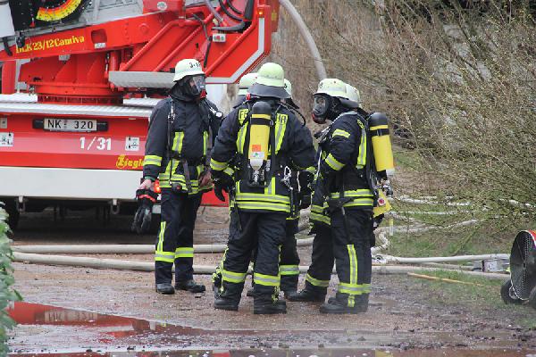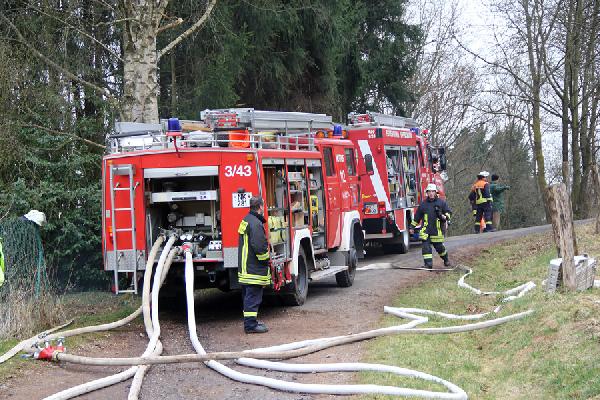 Als problematisch stellte sich früh die Löschwasserversorgung dar. Der Hydrant, der sich auf dem Gelände befindet, brachte nicht die für diesen Einsatz erforderliche Löschwassermenge, so dass eine rund 500 Meter lange Versorgungsleitung mit dem Schlauchwagen bis zur Tholeyer Straße verlegt werden musste. Zusätzlich wurden Tankfahrzeuge aus Illingen, Uchtelfangen und Neunkirchen sowie der Löschbezirk Bubach-Calmesweiler angefordert.