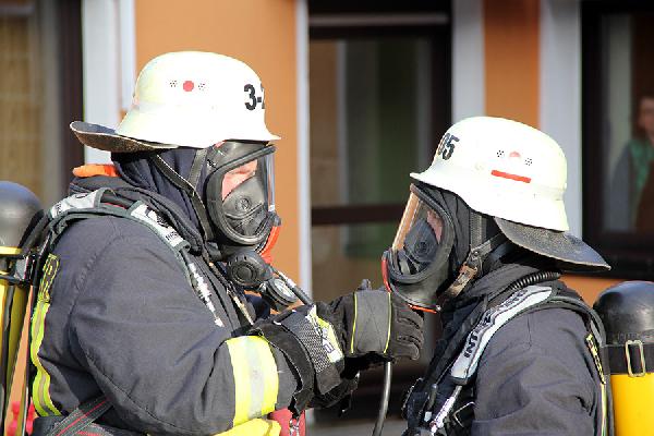 Nach und nach werden die im Gebäude platzierten Übungspuppen von den vorgehenden Trupps gefunden und ins Freie gebracht. Sehr zur Zufriedenheit der Übungsleitung: Bis auf kleinere Punkte verlief die gemeinsame Übung reibungslos.