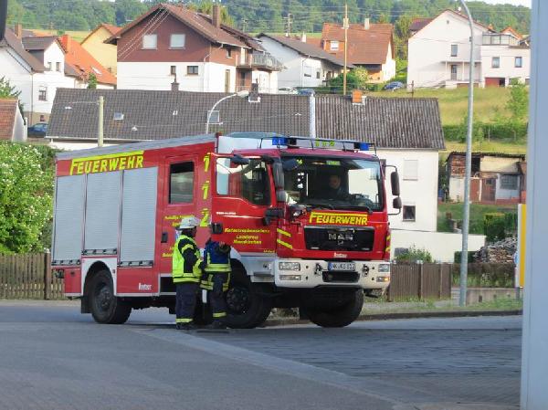 Da sich die Hydranten zur Wasserversorgung auf der gegenüberliegenden Straßenseite der stark befahrenen B10 befinden, wurde diese Versorgung aufgrund der Übungssituation simuliert. Im Ernstfall wäre eine Sperrung der Straße erforderlich.