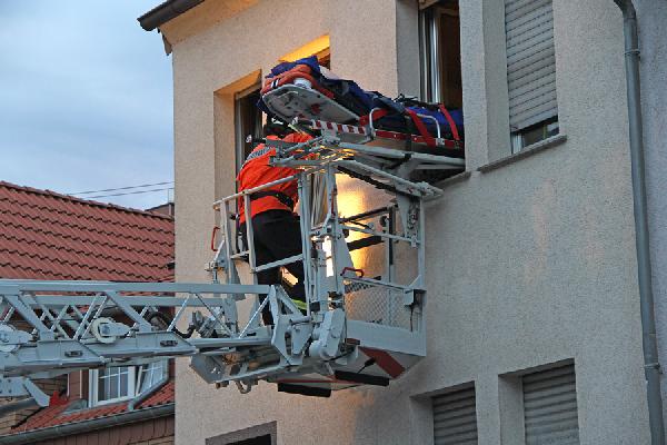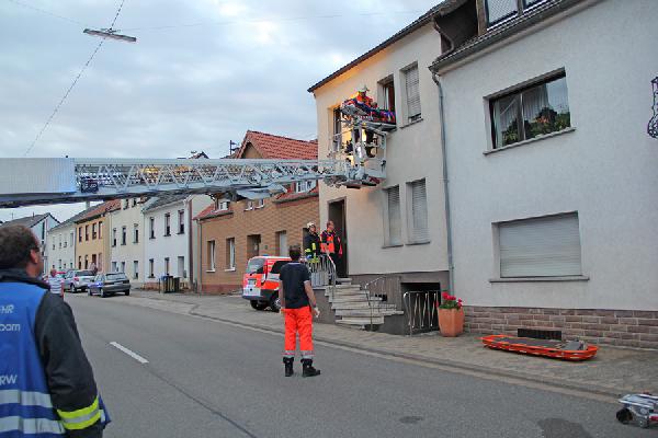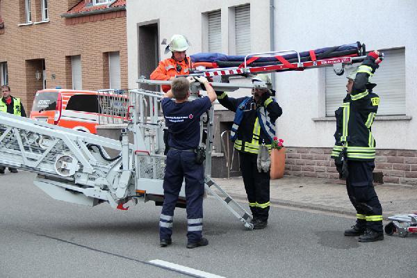 Da ein Transport über das enge Treppenhaus nicht möglich war, wurde zusätzlich zur Feuerwehr aus Eppelborn und Hierscheid die Drehleiter aus Lebach zur Einsatzstelle geschickt. Über ein Fenster konnte der Patient auf die vorbereitete Trage am Korb der Drehleiter gelagert und nach unten verbracht werden.