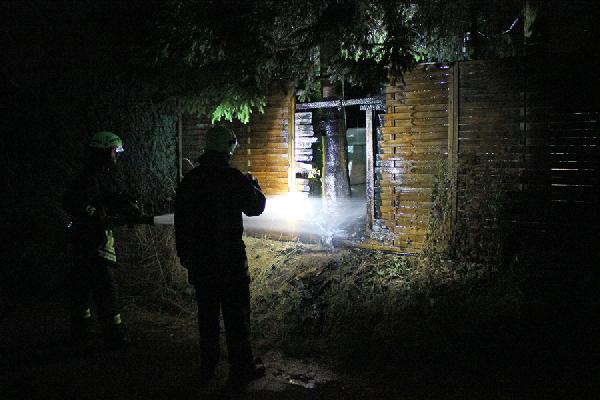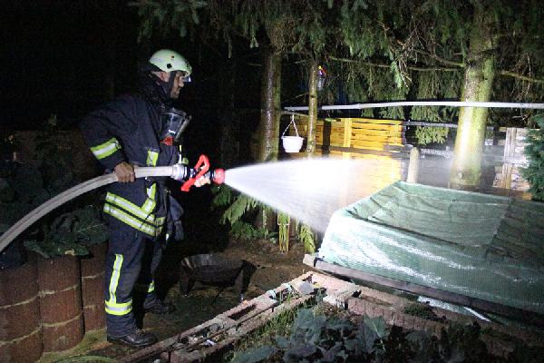 Dem Besitzer des Grundstücks gelang es, noch vor dem Eintreffen der Feuerwehr den Entstehungsbrand zu löschen. Die Einsatzkräfte kontrollierten die Einsatzstelle und wässerten aufgrund der großen Trockenheit den kompletten Bereich um die Einsatzstelle sowie die darüber befindliche Tannenhecke.