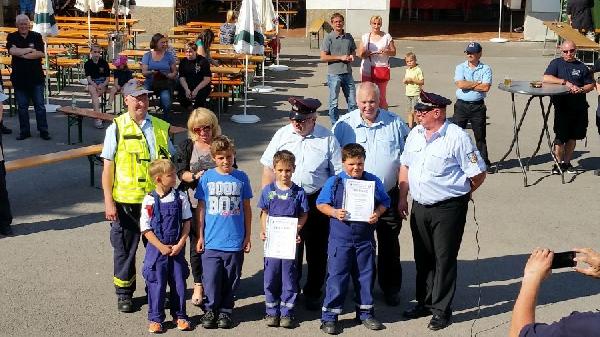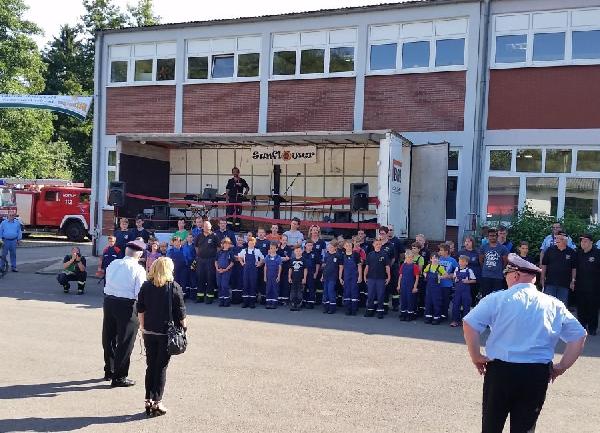 In diesem Jahr gab es aufgrund des Jubiläums der Jugendfeuerwehr gleich doppelten Grund zum feiern. Das Fest startete in diesem Jahr mit einer Übung der Jugendfeuerwehren der Gemeinde. Die angenommene Lage war ein Brand im Bereich des Getränkemarktes Babu, sowie in der angrenzenden Dachdeckerei. Nachdem die Sirenen den Einsatz angekündigt haben, waren auch binnen kurzer Zeit alle an der Übung beteiligten Feuerwehren zur Stelle und die gestellten Übungsszenarien wurden abgearbeitet. Die zahlreich anwesenden Zuschauer und die eingeladenen Gäste konnten sich vom Ausbildungsstand unseres Nachwuchses ein Bild machen.