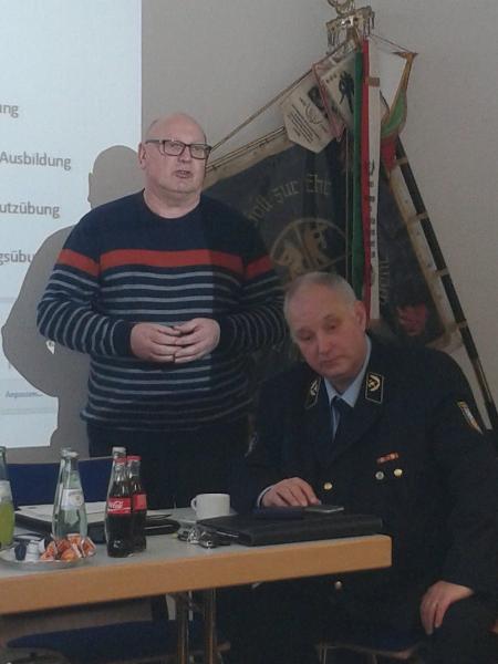 Es folgte der Bericht des Kassenwartes. Die beiden Kassenprüfer Uwe Schulz und Erik Diwersy bestätigtem dem Kassierer Guido Schwirz und seinem Stellvertreter Stefan Wagner eine korrekte Kassenführung und baten um Entlastung des Kassierers. Dieser wurde durch die Mannschaft stattgegeben und so wurde in Folge der Vorstand des Löschbezirk ebenfalls entlastet. Guido Schwirz stand als Kassierer nicht mehr zur Wahl. Sein Stellvertreter Stefan Wagner stellte sein Amt als Stellvertreter zur Verfügung. So galt es die beiden Ämter der Kassierer neu zu wählen. Für das Amt des Kassierers wurde der bisherige Stellvertreter Stefan Wagner vorgeschlagen. Er wurde mit allen Stimmen, bei einer Enthaltung, von der Mannschaft gewählt. Seine Stellvertreterin wurde im nächsten Wahlgang Kathrin Schorr. Auch Sie wurde mit allen Stimmen, bei einer Enthaltung gewählt. Die beiden Wahlen wurden, auf Antrag aus der Mannschaft, in geheimer Form durchgeführt. Löschbezirksführer Markus Lambert fragte nach, ob die Gewählten die Ämter übernehmen würden. Beide Feuerwehrkameraden- /innen nahmen das Amt an.