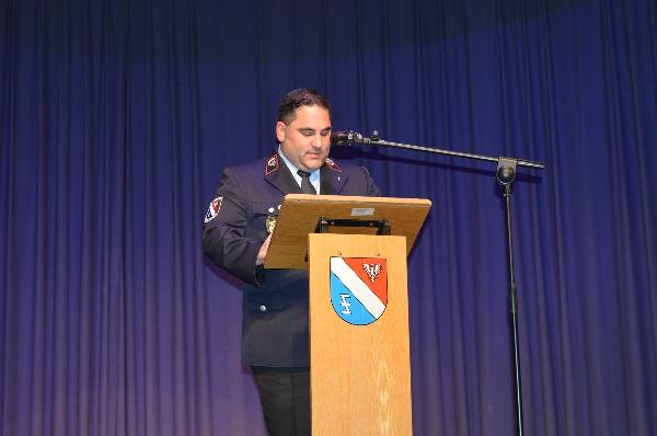 Klaus Theis überbrachte auch die Grüße des Brandinspekteurs Thom und lobte die Arbeit der Feuerwehr im Löschbezirk Bubach-Calmesweiler. Ebenso ging er auf die Unterstützung der Familie für die Feuerwehrarbeit ein und dankte dafür.
