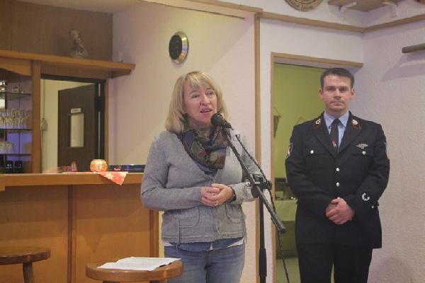 Bürgermeisterin Birgit Müller-Closset bedankte sich bei den Mitgliedern des Löschbezirkes Humes für deren engagierte Arbeit zugunsten der Sicherheit der Bürgerinnen und Bürger von Humes und der Gesamtgemeinde. Der Löschbezirk stellte noch während des Abends unter Beweis, welch wichtige Rolle er für die Sicherheit des Ortsteils einnimmt, denn die Mannschaft wurde zum Einsatz zu einem brennenden Wohnhaus in Humes gerufen.